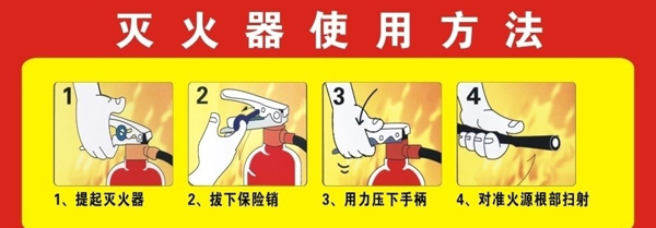 滅火器使用步驟五個字:看、提、拔、瞄、壓。