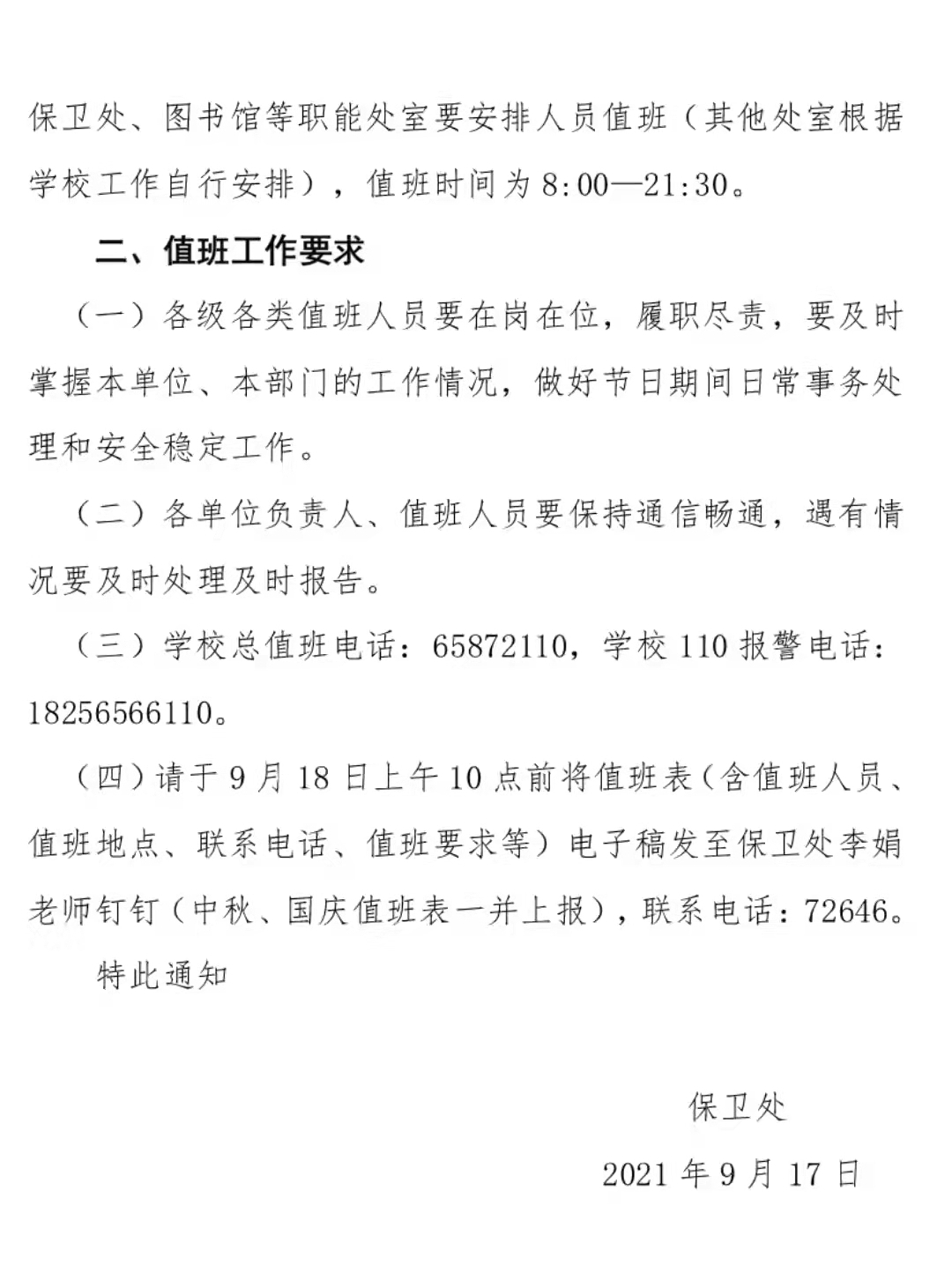 關(guān)于早好2021年中秋節(jié)、國慶節(jié)放假值班工作的通知