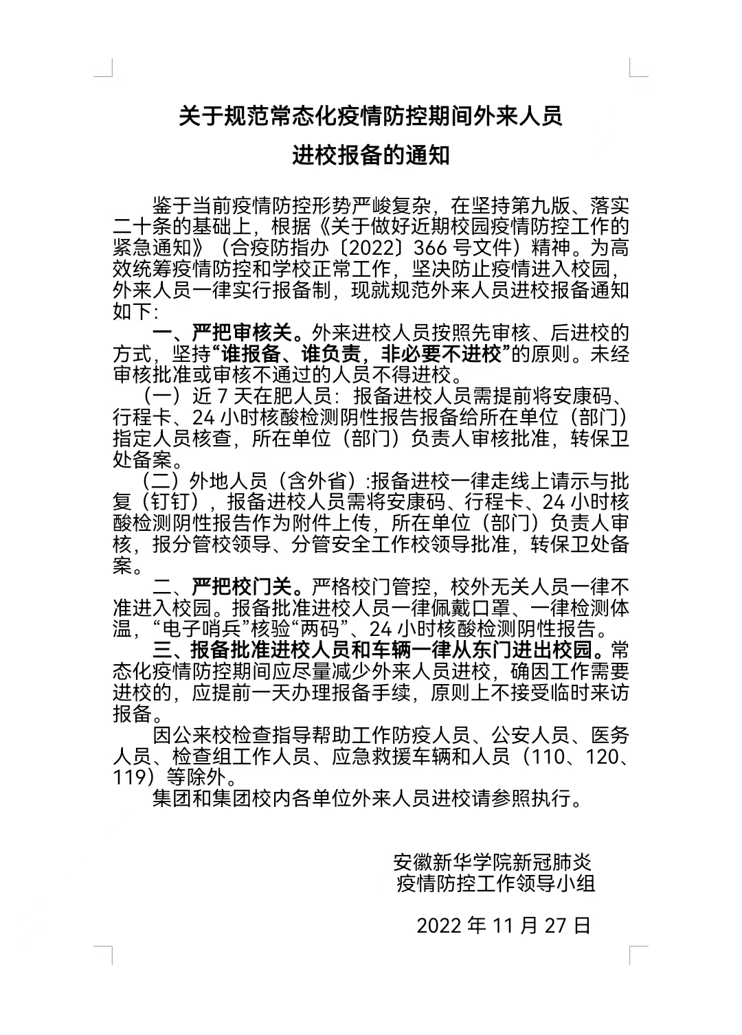 關(guān)于規(guī)范常態(tài)化疫情防控期間外來(lái)人員進(jìn)校報(bào)備的通知