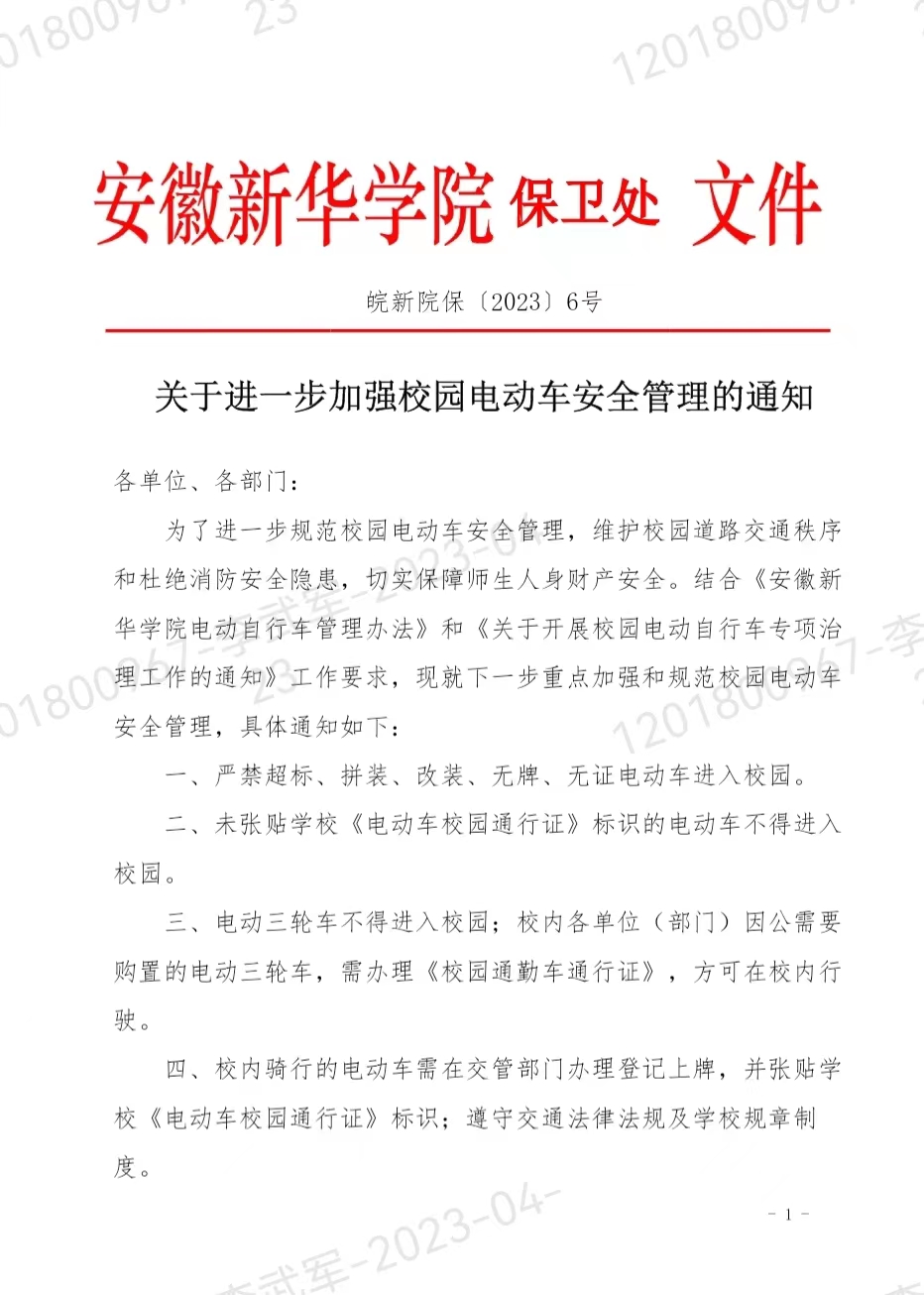 關(guān)于進(jìn)一步加強(qiáng)校園電動(dòng)車安全管理的通知