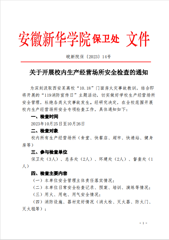 關于開展校內(nèi)生產(chǎn)經(jīng)營場所安全檢查的通知