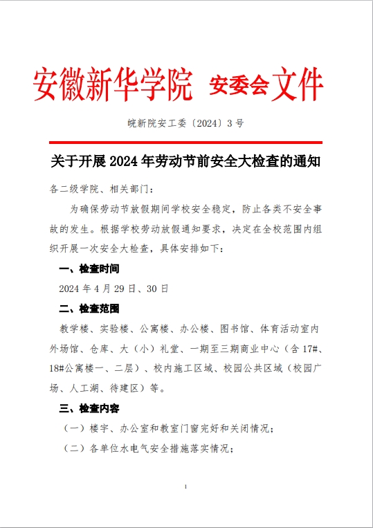 關(guān)于開展2024年勞動節(jié)前安全大檢查的通知