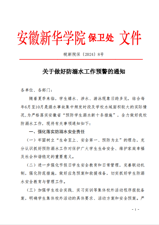 皖新院?!?024〕8號(hào) 關(guān)于做好防溺水工作預(yù)警的通知