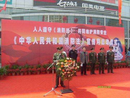 2009年4月29日上午10:00,由合肥市消防支隊主辦的“人人遵守《消防法》、共同維護消防安全”——《中華人民共和國消防法》宣傳月啟動儀式在家樂福廣場隆重舉行。合肥市政府、省消防總隊、市公安局以及市消防支隊的有關(guān)領(lǐng)導(dǎo)出席啟動儀式。我院有44名學生參加本次活動。
