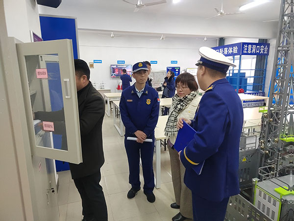 檢查組檢查了我校的消控室,校園監(jiān)控室,微型消防站,消防安全教育主題教室。并對微型消防站的應(yīng)急反應(yīng)進行了突擊檢查。我校消防人員接警立即反應(yīng),根據(jù)消防流程對著火地點進行了有效撲救。檢查組一行對我校的消防安全教育主題教室重點檢查,詳細詢問了教室的使用情況,觀看了教室內(nèi)各種消防設(shè)施的演示。王應(yīng)平處長對我校的消防安全教育主題教室給予了高度的評價,表示有這樣一個主題實驗室需要好好利用,爭取在培養(yǎng)人才和消防安全演練等方面多多發(fā)揮作用。