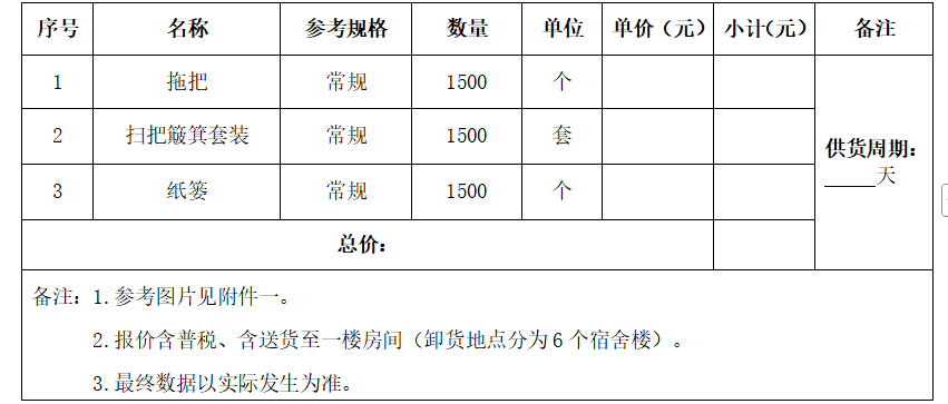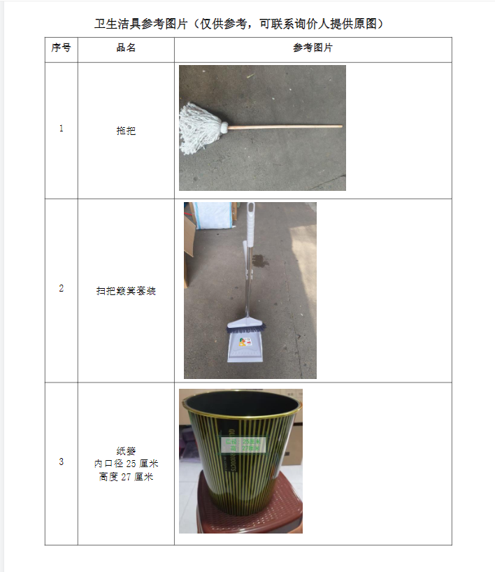 宿舍拖把、紙簍、掃把簸箕套裝采購項(xiàng)目詢價(jià)公告