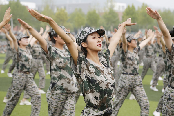 分列式表演結(jié)束后,3個學(xué)生方隊進行了軍體拳、韻律操、軍歌合唱等訓(xùn)練成果匯報。