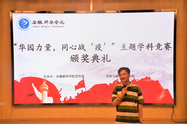 本網(wǎng)訊(通訊員:鄭夢竹)6月8日,為了充分展現(xiàn)當代大學生“國家有難,匹夫有責”的愛國情懷和良好形象。安徽新華學院“華園力量,同心戰(zhàn)疫”主題學科競賽頒獎典禮在演播廳舉行。出席頒獎典禮人員有文化與新聞傳播學院院長何村,校宣傳處副處長范文其,文化與新聞傳播學院副院長洪玉、院長助理王鵬、藝術表演系副主任潘馳群、新聞系副主任張倩以及參賽選手代表。