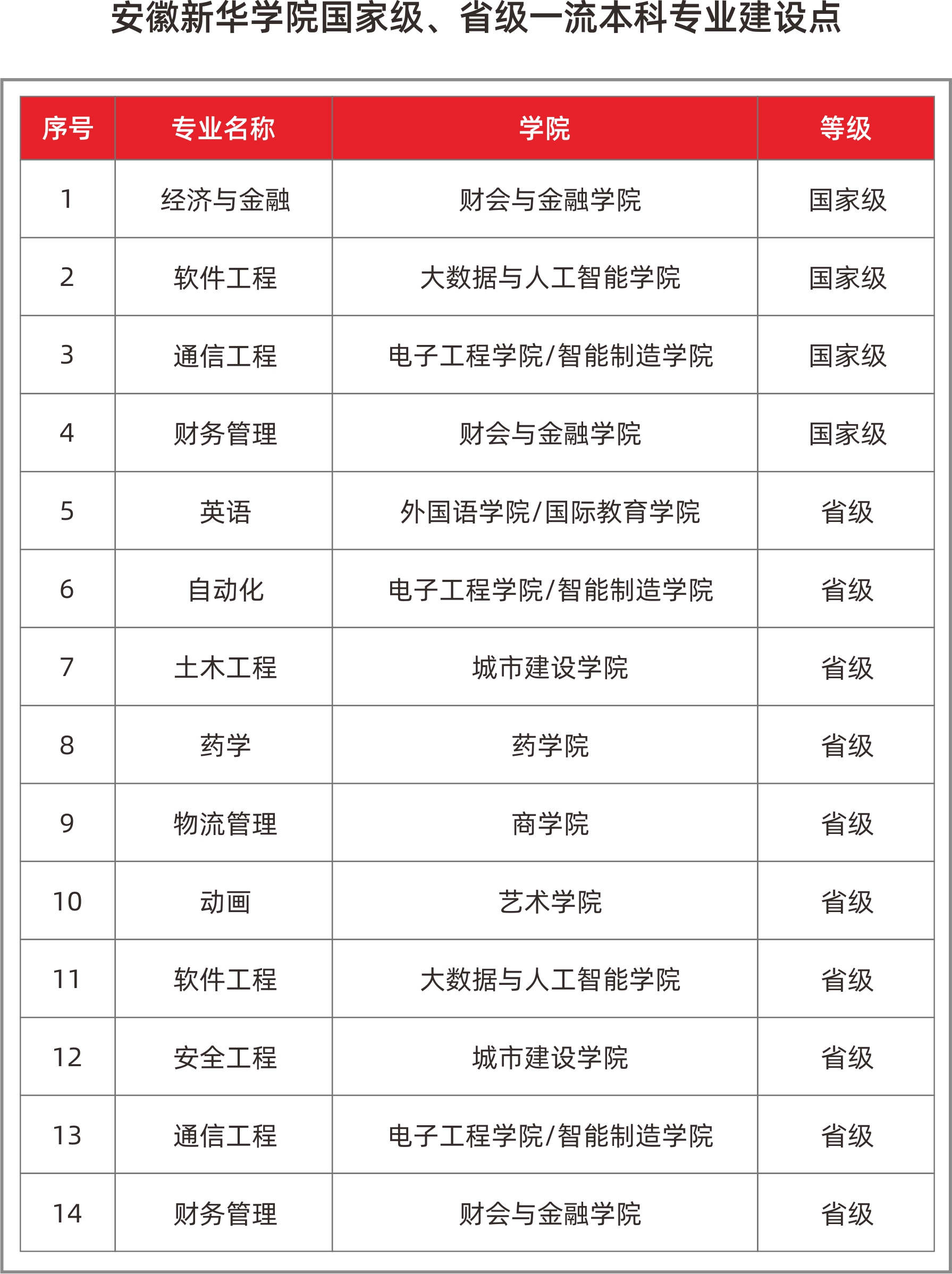 以服務(wù)安徽省與長(zhǎng)三角區(qū)域經(jīng)濟(jì)社會(huì)發(fā)展為導(dǎo)向,設(shè)置本科專(zhuān)業(yè)61個(gè)(其中2024-2025學(xué)年度招生專(zhuān)業(yè)45個(gè)),形成以工、管為主,經(jīng)、教、文、醫(yī)(藥)、藝等多學(xué)科協(xié)調(diào)發(fā)展的專(zhuān)業(yè)體系。共獲批4個(gè)國(guó)家級(jí)一流本科專(zhuān)業(yè)建設(shè)點(diǎn)、10個(gè)省級(jí)一流本科專(zhuān)業(yè)建設(shè)點(diǎn),國(guó)家級(jí)一流本科專(zhuān)業(yè)總數(shù)位居全國(guó)民辦高校第六位。