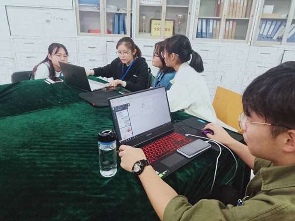 還有一群人,面對著電腦屏幕、敲擊著他們手中的鍵盤,他們就是新媒體中心的小伙伴們,主要負責(zé)每天的學(xué)校官方微信推文。他們通過編輯微信推文,為不能在現(xiàn)場觀看的老師、家長、學(xué)生提供最新鮮的運動會賽況。“推文的編輯雖然很繁瑣,可是當(dāng)我看到文章的閱讀量在持續(xù)增長時,我就覺得所做的一切都是值得的。”新媒體中心王光陽說道。