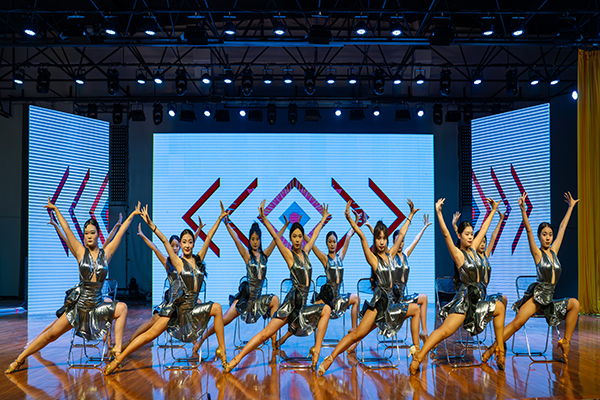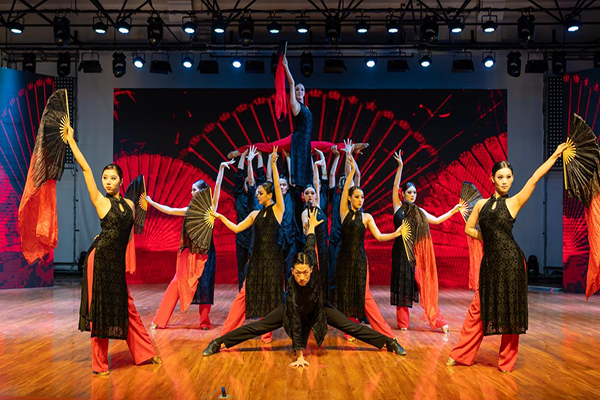 整場晚會共14個舞蹈節(jié)目,展示了師生們多年學(xué)習(xí)與實踐教學(xué)的成果,以《華韻》藝術(shù)表演舞開場,展現(xiàn)了“剛?cè)嵯酀?jì)”的中華美學(xué)。其中花鼓燈《淮畔幽蘭》、爵士舞《Jazz Girl》《芭蕾基本功展示》、街舞《做自己的太陽》和少兒舞蹈《燦爛的日子》凸顯了藝術(shù)學(xué)院以市場為導(dǎo)向,以夯實專業(yè)基礎(chǔ)為抓手,不斷提高舞蹈專業(yè)教育教學(xué)質(zhì)量,學(xué)生們基本功扎實,表現(xiàn)力強(qiáng)。隨后的藝術(shù)表演舞更是形式多樣,傳統(tǒng)的旗袍長衫與柔情的倫巴融合出了一支獨具特色的《蘭亭序》,藝術(shù)表演舞《狂歡之夜》《詠春》《博弈》以及教師作品《Dangerous》《西班牙斗牛舞》的呈現(xiàn)將晚會推向了高潮。最后,晚會在20級全體同學(xué)帶來的舞蹈《我的未來式》中來到了尾聲,他們熱情、青春、充滿活力自信的表演為本場匯報演出拉上了帷幕。