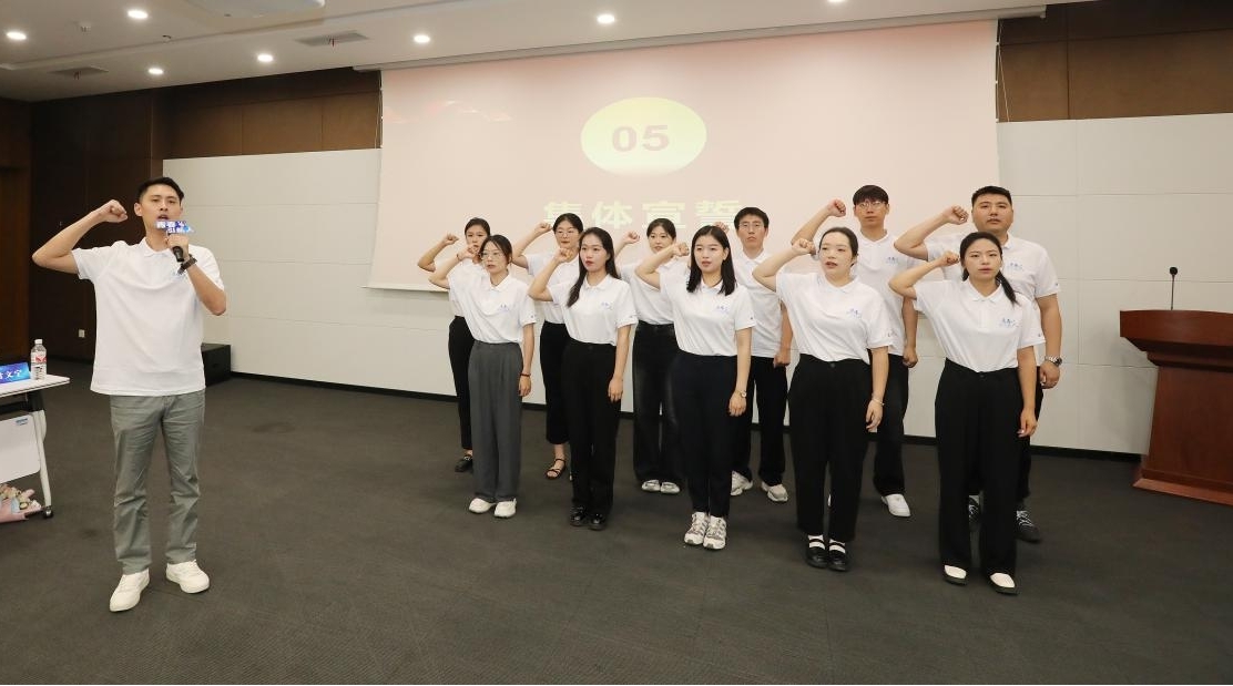 新輔導(dǎo)員代表王子喬老師與導(dǎo)師代表胡晶晶老師相繼發(fā)言,前者闡述了對即將投身教育事業(yè)的熱切憧憬,后者則對新成員致以熱烈歡迎,寄予厚望與極高期待。隨后,12位新入職輔導(dǎo)員共同宣誓,洪亮的聲音、堅(jiān)定的誓言,為學(xué)校學(xué)工團(tuán)隊(duì)補(bǔ)充了新力量。