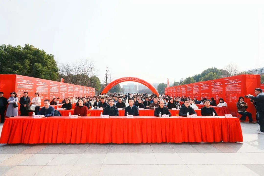 與會領(lǐng)導(dǎo)上臺共同啟動2025年合肥高新區(qū)春季校園招聘儀式。