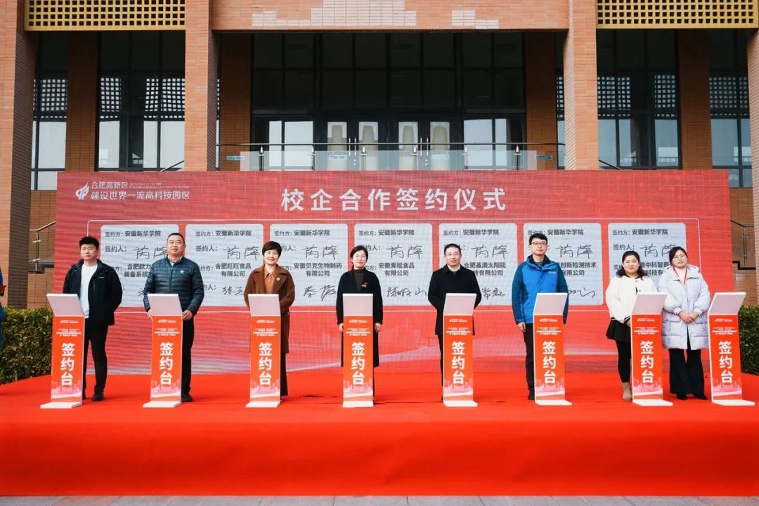 本次活動是落實“人才強區(qū)”戰(zhàn)略的重要舉措,通過黨建引領(lǐng)凝聚合力,為高校畢業(yè)生與企業(yè)搭建精準對接橋梁。安徽新華學院副校長王琦進在致辭中指出,希望通過此次活動,能夠?qū)崿F(xiàn)政校企三方聯(lián)動,精準對接學生的就業(yè)需求,共同服務(wù)、促進經(jīng)濟社會發(fā)展。現(xiàn)場還聘任了10名優(yōu)秀學子擔任高新區(qū)首批“青春推介官”,他們將以青年視角為城市發(fā)展代言,助力人才政策宣傳。我校與貝克生物、青松食品、晶澳太陽能等七家重點企業(yè)簽署校企合作協(xié)議,深化產(chǎn)教融合,共育高素質(zhì)技能人才。