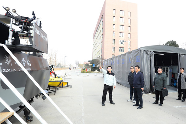 趙良慶首先對張正竹書記一行的到來表示熱烈歡迎,并簡要介紹了安徽新華學院的發(fā)展歷程、學科特色優(yōu)勢,以及在教育、科研等領(lǐng)域的重要成果等。他指出,我校無人艇項目團隊與水產(chǎn)所共建“水產(chǎn)增養(yǎng)殖安徽省重點實驗室智慧漁業(yè)研究中心”,開發(fā)智慧漁業(yè)養(yǎng)殖,取得了一定的成效。希望繼續(xù)加強與安徽省農(nóng)業(yè)科學院各研究所深入合作,產(chǎn)教深度融合,提升我校青年教師的科研能力。