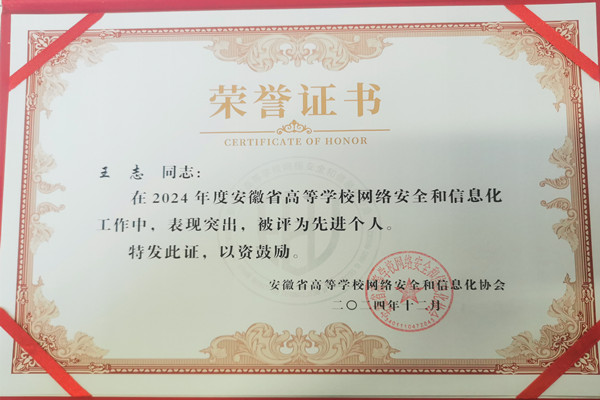 我校教師榮獲2024年度安徽省高校網(wǎng)絡(luò)安全和信息化工作先進(jìn)個(gè)人稱號(hào)