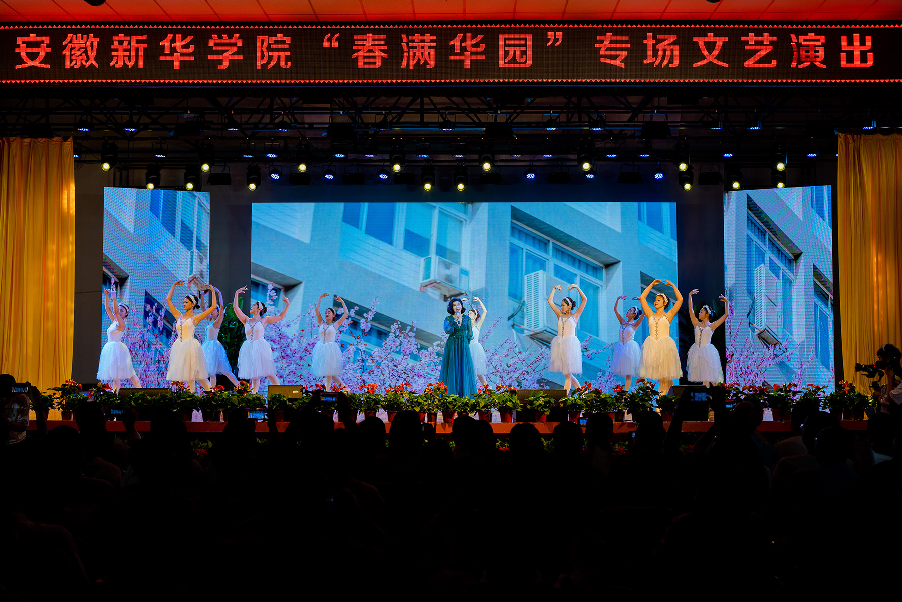 與會嘉賓在學(xué)校大禮堂觀看了“春滿華園”的專場文藝演出,演出展示了我校師生的藝術(shù)才華和精神風(fēng)貌,為峰會增添了一抹亮色。
