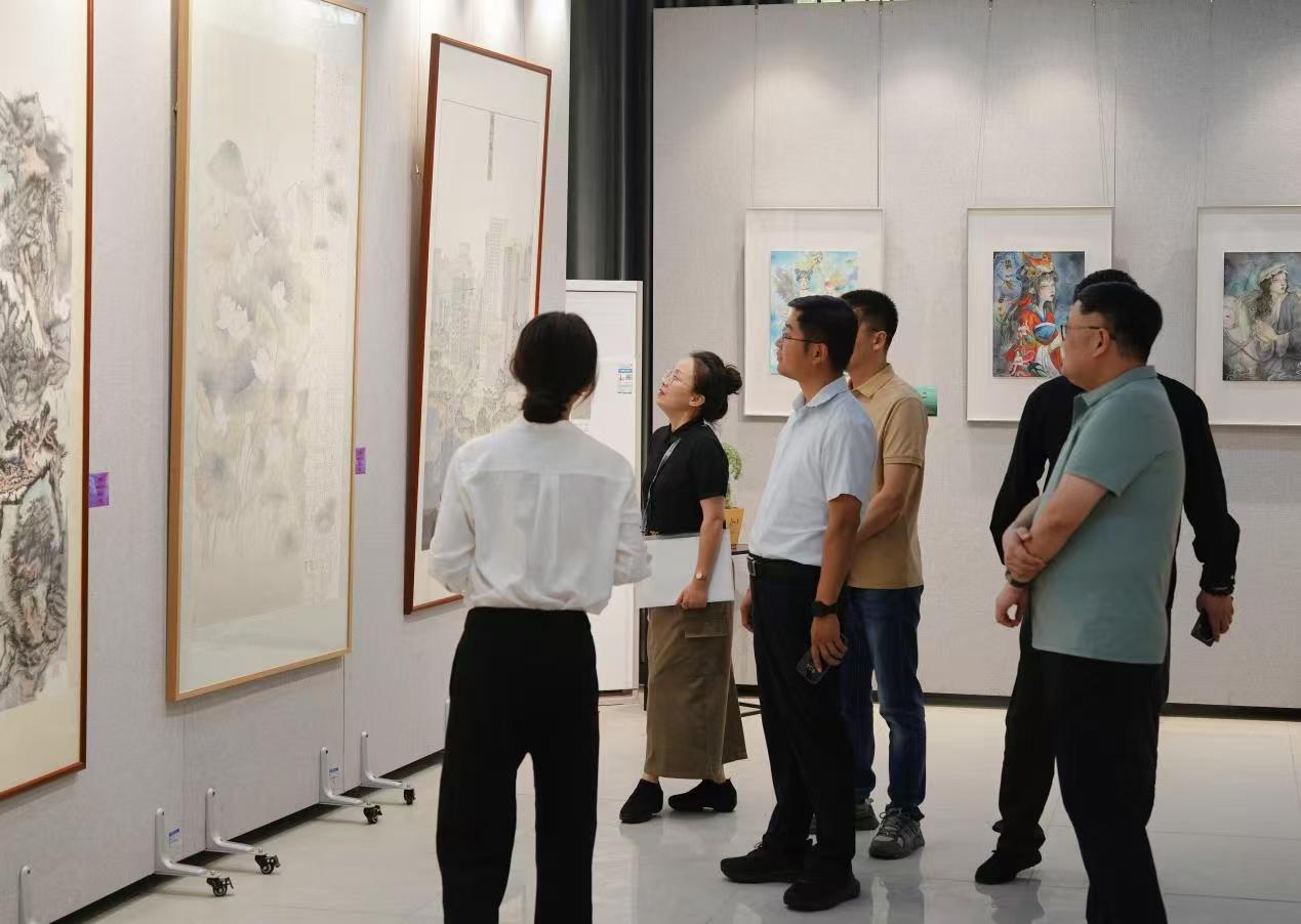 會后,一行人共同參觀了藝術(shù)學院師生藝術(shù)作品展。