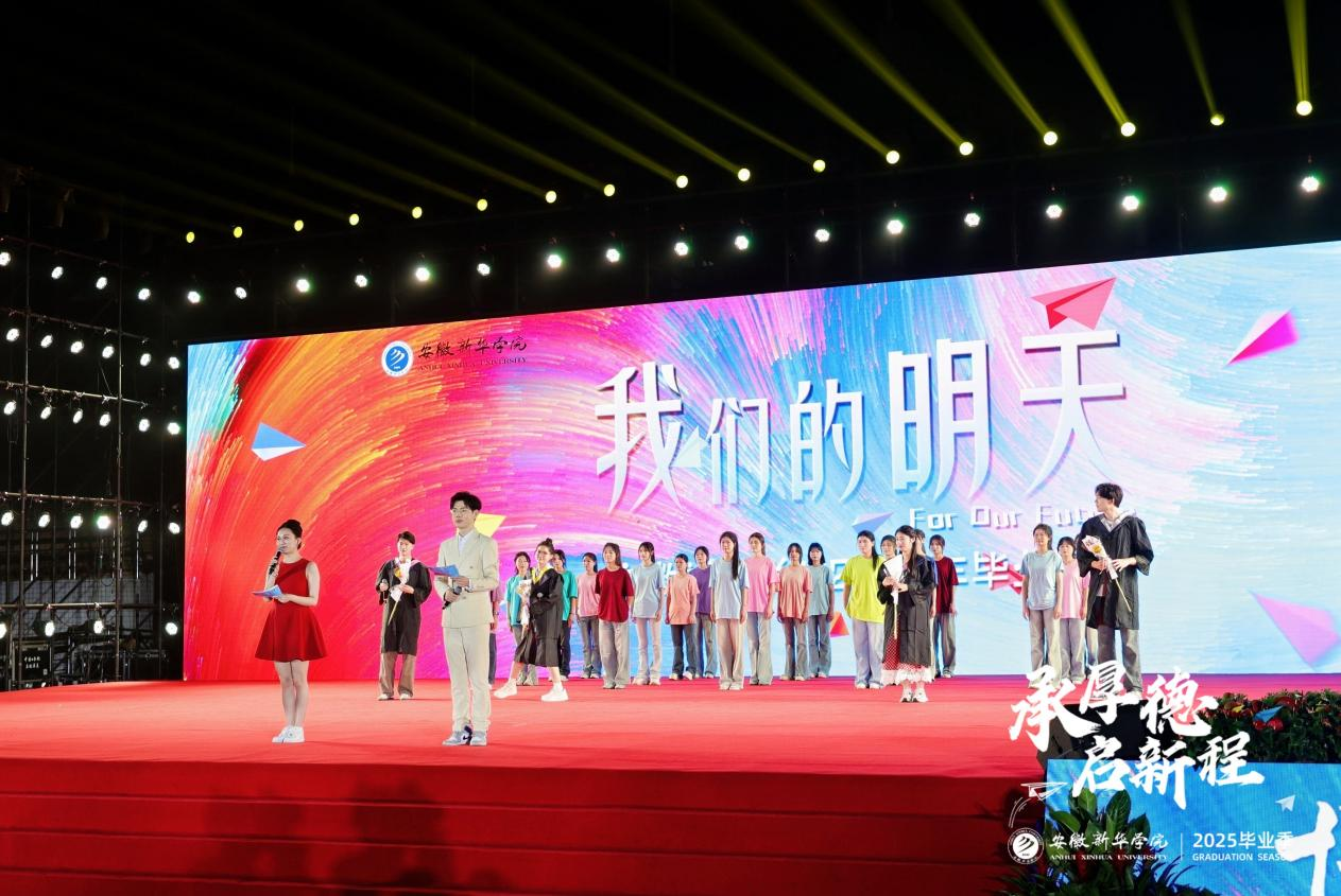 安徽新華學(xué)院為2025屆學(xué)生準(zhǔn)備了專屬畢業(yè)歌會——“我們的明天”。畢業(yè)生、教師、校友齊聚祥云體育場,用歌聲鐫刻青春記憶,以旋律致敬四年韶華。