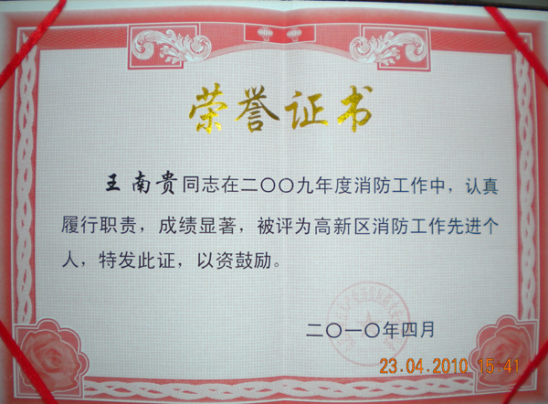 我院喜獲高新區(qū)2009年度消防工作先進(jìn)單位榮譽(yù)稱號
