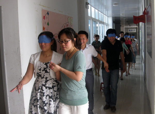 為讓輔導(dǎo)員盡快進(jìn)入游戲角色,培訓(xùn)由趣味橫生的“微笑握手、傳遞心愿”熱身游戲開(kāi)始。接著,方老師通過(guò)“團(tuán)隊(duì)跳躍”、“心有千千結(jié)”、“信任之旅”等游戲,讓學(xué)員學(xué)會(huì)了在團(tuán)體合作中如何更好地分工合作,運(yùn)用團(tuán)體智慧的方式來(lái)解決問(wèn)題,也增強(qiáng)團(tuán)隊(duì)凝聚力。
