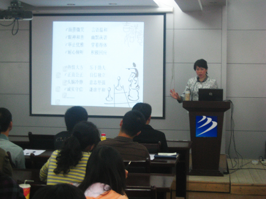 培訓(xùn)當(dāng)天上午,學(xué)院邀請(qǐng)安徽省心理咨詢(xún)學(xué)會(huì)會(huì)長(zhǎng)、合肥師范學(xué)院李群教授為新教職工帶來(lái)一場(chǎng)主題為《情商:人生的CEO——師生溝通的藝術(shù)》的專(zhuān)題講座。李教授首先結(jié)合案例分析了當(dāng)今大學(xué)生存在的主要心理問(wèn)題及師生間的溝通障礙,其次通過(guò)現(xiàn)場(chǎng)示范、課間互動(dòng)等形式,生動(dòng)講授了情商在日常生活和工作中的作用,以及如何運(yùn)用師生溝通藝術(shù)來(lái)正確引導(dǎo)大學(xué)生健康心理,包括所應(yīng)具備的包括禮儀、贊美與感激、寬容與幽默等技能和素質(zhì)。李教授的講座不僅使學(xué)員掌握了更好與學(xué)生溝通的技能,也為教師自我心理調(diào)適指明了路徑。