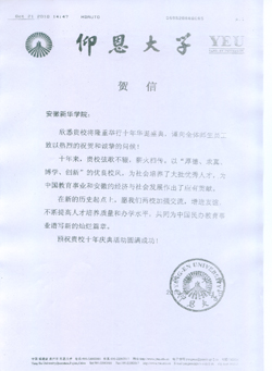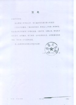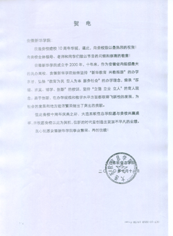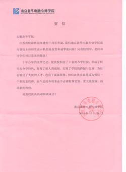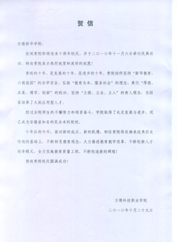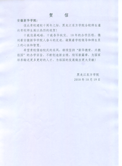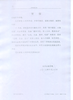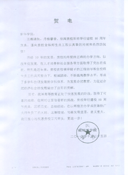 在全院師生共慶華園10周年華誕之際,省內(nèi)外各大高校也紛紛發(fā)來(lái)了賀信,向我院建院10周年表示熱烈的祝賀!
