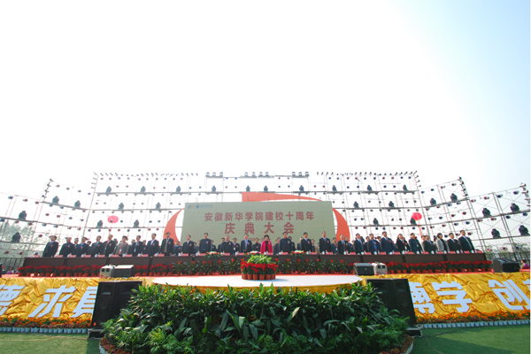 十年櫛風(fēng)沐雨,十年風(fēng)華秋實(shí)。11月6日,安徽新華學(xué)院慶祝建校10周年慶典大會(huì)在祥云體育場(chǎng)隆重舉行。安徽省人大副主任朱維芳、郭萬(wàn)清、安徽省副省長(zhǎng)唐承沛、安徽省政協(xié)副主席王鶴齡出席慶典大會(huì),安徽省委宣傳部副部長(zhǎng)黃傳新、安徽省委統(tǒng)戰(zhàn)部副部長(zhǎng)操建華、安徽省政府副秘書(shū)長(zhǎng)余華柱,安徽省政協(xié)常委、新華集團(tuán)董事長(zhǎng)吳俊保、安徽省發(fā)改委副主任余群、安徽省教育廳副廳長(zhǎng)李和平、安徽省科技廳副廳長(zhǎng)王洵、安徽省經(jīng)濟(jì)和信息化委員會(huì)副主任吳曉明、安徽省人力資源和社會(huì)保障廳副廳長(zhǎng)林海、共青團(tuán)安徽省委副書(shū)記王琦、徽商銀行董事長(zhǎng)王曉昕、安徽大學(xué)校長(zhǎng)程樺、中國(guó)科技大學(xué)黨委副書(shū)記鹿明、合肥工業(yè)大學(xué)黨委副書(shū)記張效英、中國(guó)農(nóng)業(yè)銀行安徽省分行副行長(zhǎng)程春峰、合肥市委常委、統(tǒng)戰(zhàn)部部長(zhǎng)張進(jìn)、合肥市人大副主任郭超、合肥市副市長(zhǎng)、安徽大學(xué)副校長(zhǎng)吳春梅、合肥市高新區(qū)管委會(huì)主任李兵、合肥市公安局局長(zhǎng)程翰、新華集團(tuán)副董事長(zhǎng)吳偉、督導(dǎo)專(zhuān)員、安徽新華學(xué)院黨委書(shū)記方向明、安徽新華學(xué)院院長(zhǎng)王成福等在主席臺(tái)前排就座,應(yīng)邀參加慶典大會(huì)的省市政府各部門(mén)負(fù)責(zé)人、各兄弟院校代表、合作企業(yè)代表、新華集團(tuán)各單位負(fù)責(zé)人和安徽新華學(xué)院領(lǐng)導(dǎo)也在主席臺(tái)就座。