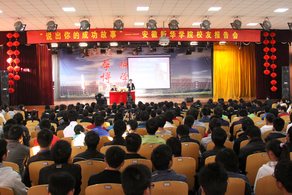 11月6日下午,安徽新華學(xué)院建校十周年系列活動“說出你的成功故事” 校友報告會在學(xué)院大禮堂隆重舉行。學(xué)院邀請連海強、胡甘霖等五名校友代表參加了報告會,一千余名在校學(xué)生聆聽了報告。報告會由招生就業(yè)辦公室負責(zé)同志主持。