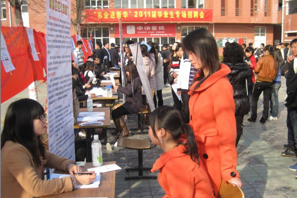 12月1日下午,我校繼“上海名企進新華”、 “浙企進新華”專場招聘會之后,學(xué)院駐省外就業(yè)辦事處針對2011屆畢業(yè)生在安徽新華學(xué)院中快文化廣場舉辦了就業(yè)辦事處系列第三場招聘會“蘇企進新華2011屆畢業(yè)生專場招聘會”。