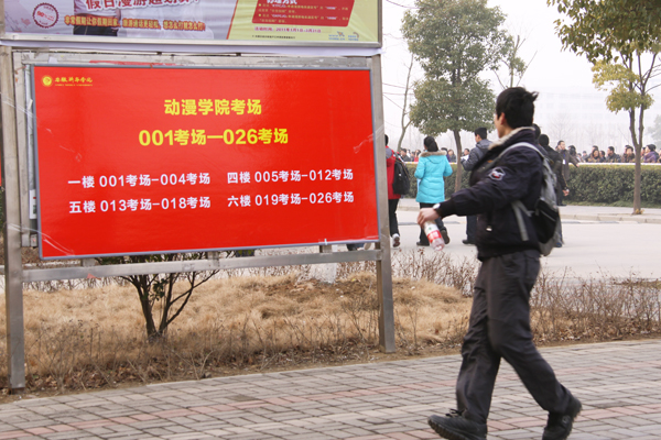 (一名考生經(jīng)過考場指示牌瞬間)