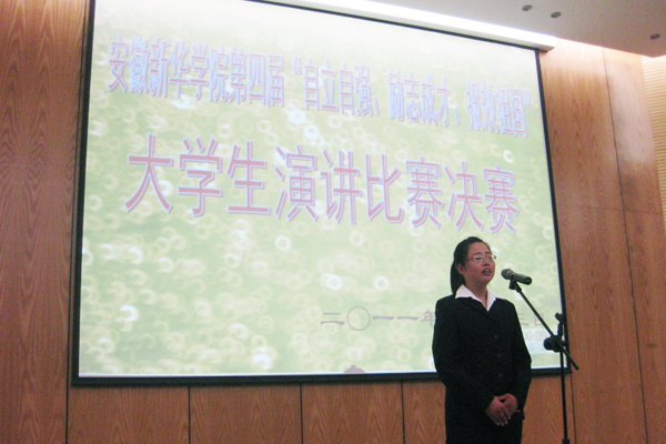 為深入宣傳貫徹黨和國家有關(guān)家庭經(jīng)濟(jì)困難學(xué)生資助政策,充分發(fā)揮各類資助措施的育人功能,激發(fā)大學(xué)生成長成才的熱情,4月13日下午,由學(xué)生處團(tuán)委主辦、動漫學(xué)院承辦的安徽新華學(xué)院第四屆“自立自強(qiáng),勵志成才,報效祖國”主題演講比賽決賽在學(xué)術(shù)報告廳舉行。學(xué)院學(xué)生處處長朱兆健、副處長鄭鋒,團(tuán)委副書記、學(xué)生處副處長馬琪以及各二級學(xué)院行政副院長出席決賽現(xiàn)場。參賽選手及各學(xué)院學(xué)生代表近160人觀看了比賽。