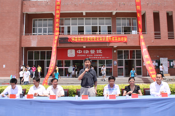 為慶祝中國共產(chǎn)黨成立90周年,引導(dǎo)和幫助廣大黨員重溫中國共產(chǎn)黨光輝歷程,了解黨領(lǐng)導(dǎo)人民建立新中國和進行社會主義現(xiàn)代化建設(shè)的偉大成就,激發(fā)愛黨、愛國、愛社會主義的熱情,堅定共產(chǎn)主義理想信念,由動漫學(xué)院黨總支主辦、動漫學(xué)院分黨校第二期入黨積極分子培訓(xùn)班承辦的 “黨史知識宣傳周系列活動”于5月9日中午正式啟動。督導(dǎo)專員、學(xué)院黨委書記方向明,學(xué)院黨委委員、動漫學(xué)院黨總支書記、院長孫家啟,動漫學(xué)院黨總支副書記、行政副院長朱誦貴出席了啟動儀式,動漫學(xué)院全體黨員和動漫學(xué)院分黨校第二期入黨積極分子培訓(xùn)班的全體學(xué)員參加了儀式。