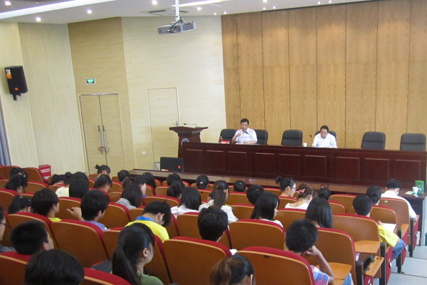 許春樵教授首先從20年前的“文學熱”話題入手,為青年學子剖析了商業(yè)化背景下文學遭遇“邊緣化”的現(xiàn)象:文學面臨著影視劇和大眾娛樂節(jié)目的沖擊而淡出人們的視野,成為當代社會的一種尷尬存在。針對這一現(xiàn)象,許春樵教授結合自己多年的文學創(chuàng)作,重點為學子們論述了面對商業(yè)化、娛樂化和大眾化的社會環(huán)境,文學創(chuàng)作者們的技術化努力:其一,積極與影視劇等視覺藝術尋求合作的空間,并在合作中堅守文學創(chuàng)作的人文關懷和精神陣地;其二,文學創(chuàng)作者應學習和了解文藝心理學和創(chuàng)作心理學的相關理論,并在創(chuàng)作中飾演多種角色,準確把握作品中人物的性格與情感,使得文學作品具有生動的情節(jié)、合理的敘事,在內容上具有可讀性,最大限度地吸引讀者的注意力;其三,在影視作品的沖擊下,文學作品要想占有一席之地,還應在戲劇沖突的設計、敘事節(jié)奏的安排、細節(jié)的描寫和人物對白的定型上狠下功夫,最大限度地貼近當代讀者的閱讀需要。在講座中,許春樵先生還列舉了龍一的《潛伏》、本•哈特的《朗讀者》、哈代的《德伯家的苔絲》以及他自己創(chuàng)作的《放下武器》、《酒樓》等文學作品的成功案例,并結合對影視劇《集結號》、《你是我兄弟》、《鄉(xiāng)村愛情》的分析,為同學們帶來一場精彩的報告,雖戶外夏日炎炎,但學術報告廳中卻春意融融,學子們對許教授的精彩演講感觸很深,現(xiàn)場不時傳來熱烈的掌聲。報告會結束后,許教授還與意猶未盡的師生進行現(xiàn)場互動。