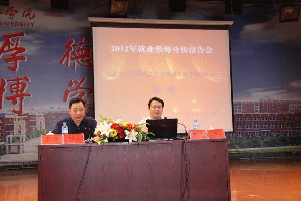6月22日下午,安徽省大中專畢業(yè)生就業(yè)指導(dǎo)中心主任鮑勇應(yīng)邀在學(xué)院大禮堂為2012屆畢業(yè)生作了“就業(yè)形勢與就業(yè)指導(dǎo)”專題報(bào)告。報(bào)告會由院長助理李勇主持,招生就業(yè)辦公室和二級學(xué)院相關(guān)負(fù)責(zé)同志、2012屆畢業(yè)班輔導(dǎo)員代表和學(xué)生代表聆聽了報(bào)告。