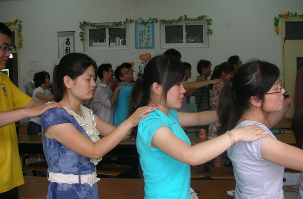 7月4日,商學(xué)院一樓的教室里時不時傳來掌聲和歌聲,各專業(yè)班級畢業(yè)前最后一次班會正在舉行。國際經(jīng)濟(jì)與貿(mào)易本科班意義非同尋常的班會在最為普通的點(diǎn)名聲中開始,輔導(dǎo)員老師用宏亮的聲音一個個點(diǎn)著全班同學(xué)的名字。畢業(yè)班的學(xué)生們從五湖四海的工作崗位上回來,像第一次邁入校門時那樣答著這一聲“到”,沒有了三、四年前的羞澀,更多的是底氣十足的清脆響亮。點(diǎn)名后,全班同學(xué)一起觀看了四年來的照片,通過小小方寸間的展示帶大家重溫了大學(xué)生活點(diǎn)滴中的歡樂和汗水。隨后,在輔導(dǎo)員老師的帶領(lǐng)下,全體同學(xué)閉上眼睛,老師開始提問:“回憶一下你剛剛走進(jìn)大學(xué)校園時的理想是什么?”“你現(xiàn)在的理想又是什么?”“你在大學(xué)中最為感動的事是什么?”“最為驕傲的事是什么?”一連串的問題,讓每一位同學(xué)在安靜中自省。思考過后,有的同學(xué)回答,“最初的理想是留校,因為覺得對學(xué)校很有感情,太想和她一起成長,一起發(fā)展?!薄艾F(xiàn)在最大的理想是在工作崗位上做好每一件事,一步步提升職業(yè)目標(biāo)?!薄白罡袆拥氖率侨嗤瑢W(xué)在我自己都忘記了自己的生日的時候給我過19歲生日!”“最驕傲的事是我和我身邊的每一位同學(xué)老師都相處的非常好!”……一連串出人意料又在情理之中的答案,讓在場的每一個人感動不已。這時,班長為畢業(yè)生們唱起了他自己寫的歌為畢業(yè)生祝福和送別,悠揚(yáng)的歌聲中,同學(xué)們難忍離別的淚水,同時更多地在互相道著珍重和祝福。