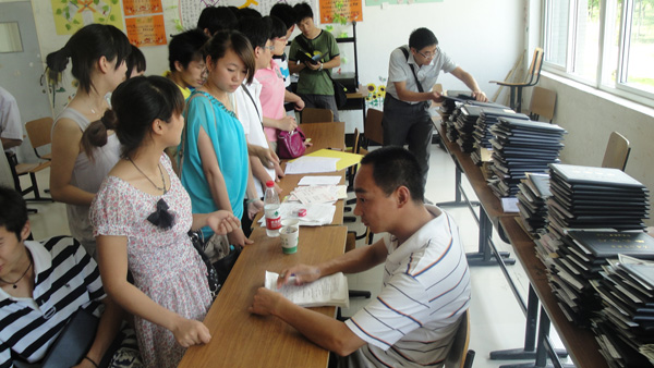 7月2日、5日分別是??粕捅究粕x校,辦公現(xiàn)場,老師們耐心細(xì)致的給每一個畢業(yè)生講解辦理程序和注意事項,同學(xué)們自發(fā)的排著長隊,安靜的等候老師給自己辦理手續(xù);留言墻上,同學(xué)們紛紛揮灑筆墨書寫著各自的心情和對母校的祝福;樹蔭下,同學(xué)們?nèi)宄扇?,看著自己設(shè)計的相冊,溫習(xí)著華園里一幅幅青春美麗的倩影,談?wù)撝?年、10年的同學(xué)聚會,憧憬著奮發(fā)圖強(qiáng)后的美好人生。