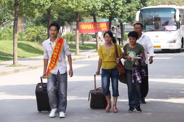 在汽車站、火車站,華園的志愿者們從新生踏上來校的第一步就做足了迎接準(zhǔn)備,橙色的白色的校服,高舉的新生接待牌都給新生醒目的提醒。早晨6點(diǎn)鐘,志愿者們早已準(zhǔn)備就緒,等待著第一班校車前往各汽車站和火車站,他們大部分是青協(xié)和校學(xué)生會的成員,迎接來自四面八方的學(xué)弟學(xué)妹們?!拔覀冊绯?點(diǎn)多就起床”志愿者沙迪迪說,“已經(jīng)做好了全天工作的準(zhǔn)備”。據(jù)了解,志愿者們的工作從早晨6點(diǎn)開始將持續(xù)一整天,中午輪流用餐,期間也沒有休息的時間。他們把迎新很放在心上,都有把鬧鐘定的很早。