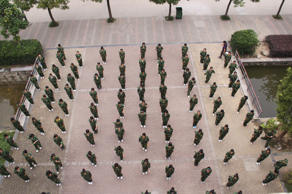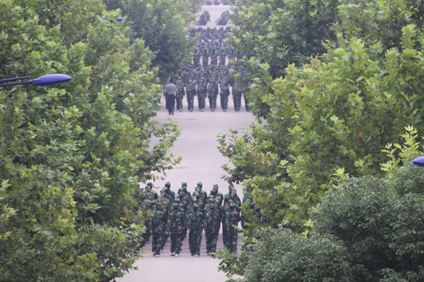2011級新生的軍訓工作已經(jīng)開始三天了,大學生記者用他們的相機記錄下了他們訓練中的點滴。(圖/學生記者 許鵬飛)