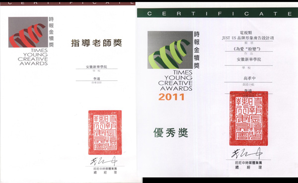 時報金犢獎由中國臺灣四大報紙之一的《中國時報》創(chuàng)辦于1992年,是全球華人地區(qū)規(guī)模最大的學(xué)生廣告活動,每年都有來自世界各地的學(xué)生參加,本屆金犢獎共設(shè)十大類獎項:平面廣告類(分六項評選)、電視廣告類、網(wǎng)絡(luò)廣告類、廣播廣告類、技術(shù)類、行銷企劃類、動畫廣告類、插畫類、裝置藝術(shù)類、人物品造型類;另設(shè)最佳文案、最佳美術(shù)、最佳原創(chuàng)、全場大獎等四個大獎。本屆賽事,兩岸參賽作品達(dá)到22355件。其中,大陸地區(qū)參賽作品13830件,參賽學(xué)校917所,均創(chuàng)下歷年最高紀(jì)錄。由我校動漫學(xué)院教師李遠(yuǎn)指導(dǎo),學(xué)生高孝中創(chuàng)作的電視類廣告作品《爲(wèi)愛“盼變”》在眾多參賽作品獲得優(yōu)秀獎。