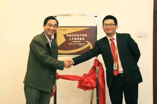 隨后,任靜生教授和李經(jīng)理簽署共建人才培養(yǎng)基地協(xié)議,袁種寶院長和劉友軍總監(jiān)為“阿里巴巴電子商務(wù)人才培養(yǎng)基地”揭牌。