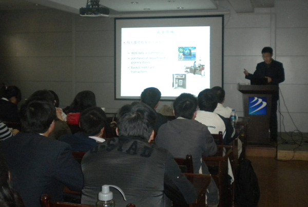 陳恩紅教授從云計算開始介紹,深入淺出的例子使在場師生對云計算有了清晰的認(rèn)識。接著,陳教授介紹了數(shù)據(jù)挖掘是從數(shù)據(jù)中提取出隱含的特別的,過去未知的,潛在有價值的信息,也是一門從大量數(shù)據(jù)或者數(shù)據(jù)庫中提取有用信息的科學(xué),他又從個性化推薦技術(shù)的應(yīng)用與Web智能挖掘兩個方面系統(tǒng)而深入地介紹了基于內(nèi)容的、基于協(xié)同過濾的和基于潛在興趣的個性化推薦技術(shù)及應(yīng)用背景。他結(jié)合大量圖例,將Web上的查詢推薦進(jìn)行了淺顯易懂的解釋。陳恩紅教授的報告內(nèi)容豐富,應(yīng)用性突出,學(xué)術(shù)性和通俗性相結(jié)合,進(jìn)一步加強(qiáng)了師生們對數(shù)據(jù)挖掘這一應(yīng)用研究領(lǐng)域中的新技術(shù)的認(rèn)識。