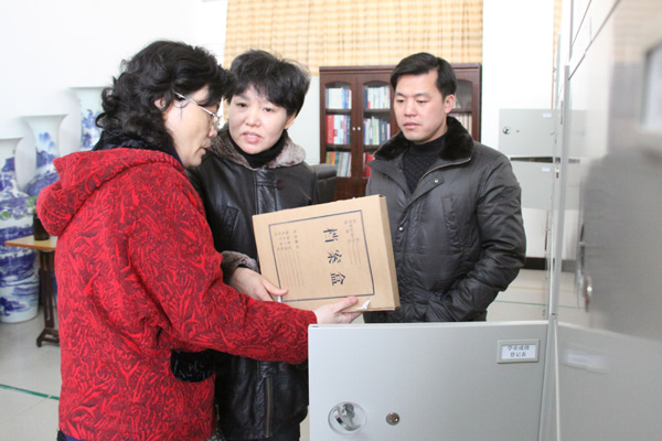 12月16日上午,由安徽省檔案局標準化建設處副處長尤正節(jié)、安徽省教育廳辦公室副主任張爾桂、兄弟高校辦公室負責同志一行6人組成的安徽省高校檔案年檢工作組蒞臨我校,對我校2011年檔案工作進行檢查指導。副院長袁種寶、辦公室負責同志、檔案室工作人員及部分兼職檔案員參與了本次檔案年檢匯報會。檢查組專家對照《評分標準》,查看了年檢材料,并進入檔案庫房現(xiàn)場查看檔案整理情況,經(jīng)過專家組評議,我校檔案管理工作年檢榮獲優(yōu)秀單位榮譽稱號。