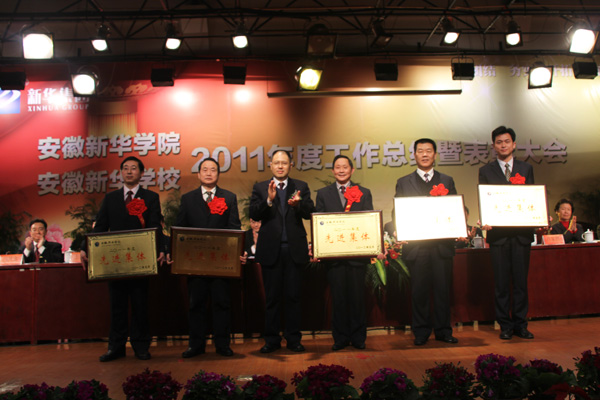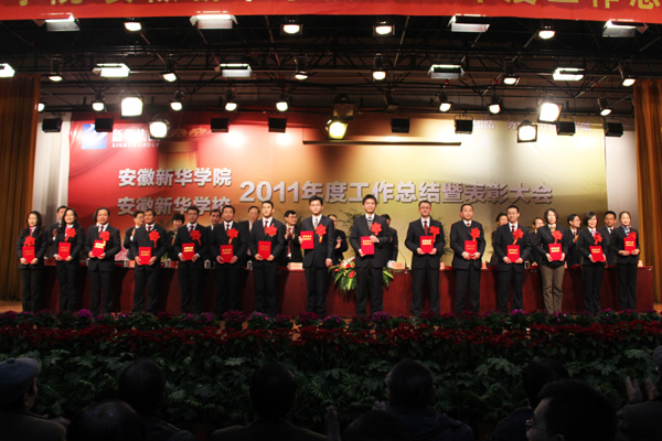 安徽新華集團(tuán)副總裁王孝武宣讀了《關(guān)于表彰2011年度先進(jìn)集體和先進(jìn)個(gè)人的決定》,授予5個(gè)二級(jí)單位“先進(jìn)集體”、70名同志“先進(jìn)個(gè)人”、22名同志“新教職工進(jìn)步獎(jiǎng)”榮譽(yù)稱號(hào)。主席臺(tái)前排就坐的領(lǐng)導(dǎo)為獲獎(jiǎng)單位和個(gè)人頒發(fā)了獎(jiǎng)牌和榮譽(yù)證書。
