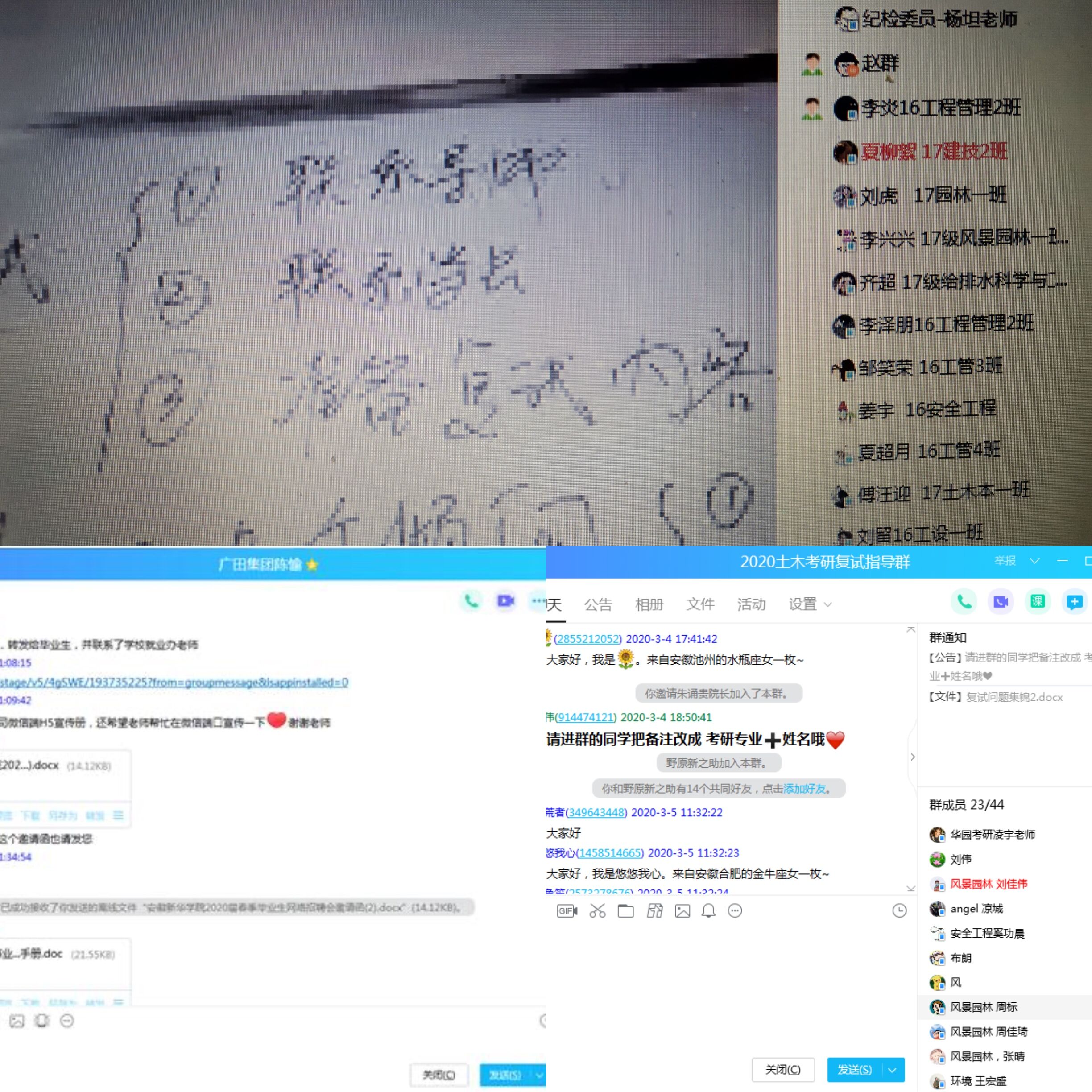 學工人員召開就業(yè)專項工作會議,仔細摸底排查畢業(yè)生就業(yè)進展、就業(yè)資源、就業(yè)能力、特色就業(yè)意向等,為開展各類就業(yè)服務打下基礎。線上發(fā)放《致2020屆畢業(yè)生的一封信》告知畢業(yè)生疫情期間學校、學院就業(yè)服務的具體內(nèi)容、具體方式和相關要求,讓久居家中的畢業(yè)生做好線上求職的心理準備,吃了一劑“定心丸”。