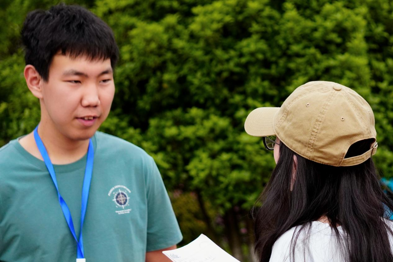 “一托、一舉、一擲”,嘗試鉛球項目的高漢說:“我來到中國半年了,中國的同學(xué)們都很厲害,這次參加的鉛球是我之前沒接觸過的,我覺得我有力量想試一試!”