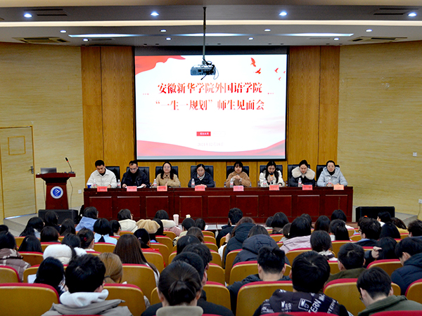 本網(wǎng)訊(通訊員:李亞婷 攝影:融媒體工作室/丁卓然、杜一晟)為進(jìn)一步促進(jìn)學(xué)生樹(shù)立正確的世界觀、人生觀與價(jià)值觀,全面提升學(xué)業(yè)成績(jī)、職業(yè)競(jìng)爭(zhēng)力和心理健康水平,推動(dòng)學(xué)生個(gè)性化成長(zhǎng),外國(guó)語(yǔ)學(xué)院于12月18日在學(xué)術(shù)報(bào)告廳組織召開(kāi)了2024年“一生一規(guī)劃”師生見(jiàn)面會(huì)。教務(wù)處處處長(zhǎng)張洪、學(xué)生處副處長(zhǎng)王強(qiáng)亞、外國(guó)語(yǔ)學(xué)院副院長(zhǎng)(主持工作)彭智、副院長(zhǎng)汪涵涵、院長(zhǎng)助理郝亮、院長(zhǎng)助理張麗、合肥歐思文貿(mào)易有限公司總經(jīng)理朱海峰,以及學(xué)院英語(yǔ)系副主任李怡嘉出席會(huì)議,部分指導(dǎo)團(tuán)隊(duì)教師、黨員學(xué)生和24級(jí)學(xué)生代表共160余人參加了本次見(jiàn)面會(huì),會(huì)議由汪涵涵主持。