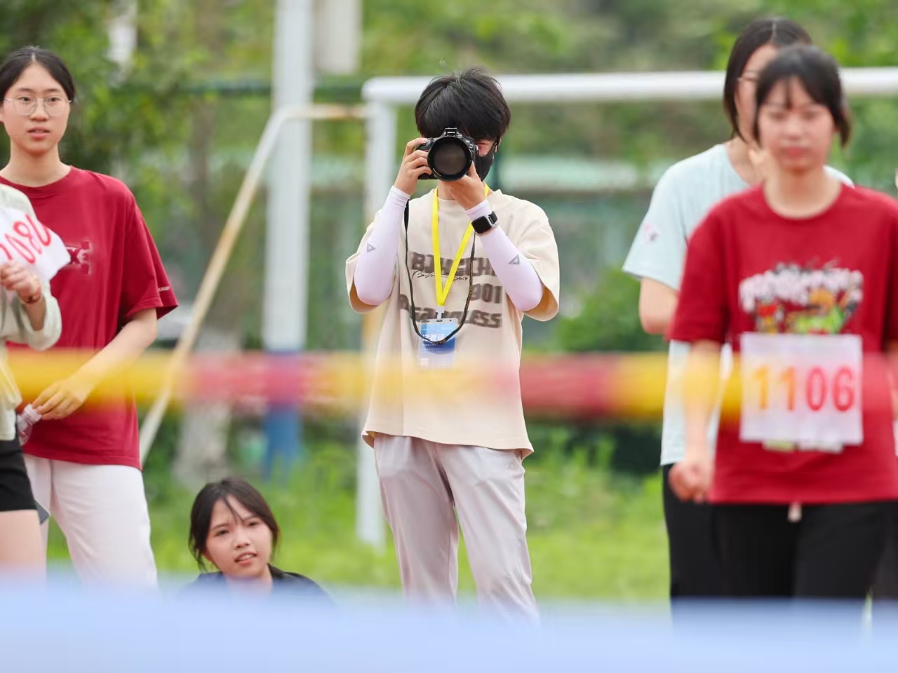 24級攝影藝術中心干事之一劉瑞,因對攝影的熱愛加入校園媒體團隊。他在此次運動會中主要負責拍攝工作,在各個項目的場地都能看到他拿著相機忙碌的身影。 “我們團隊氛圍很和諧!”他笑著說道。不過他認為,若在運動會這樣需要團隊協(xié)作的活動中出現(xiàn)分歧,團隊成員之間積極溝通,相互理解各自的想法,就能有效解決問題。