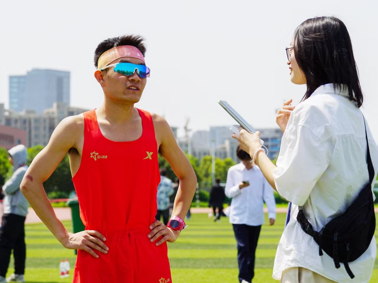 “高中就懷揣新聞理想,想在校媒學習如何成為優(yōu)秀記者。”運動會期間,23級新聞采編中心干部晏喬喬最難忘的是與老師共同撰寫開幕式稿件的經歷。“大家齊心協(xié)力創(chuàng)作的氛圍,令人難忘。”在此次運動會宣傳報道工作中,作為干部的她有條有理地組織著大家各司其職,在她的眼中,整個團隊的氛圍熱烈積極,“每個人都干勁十足,積極投入拍攝、采訪。”