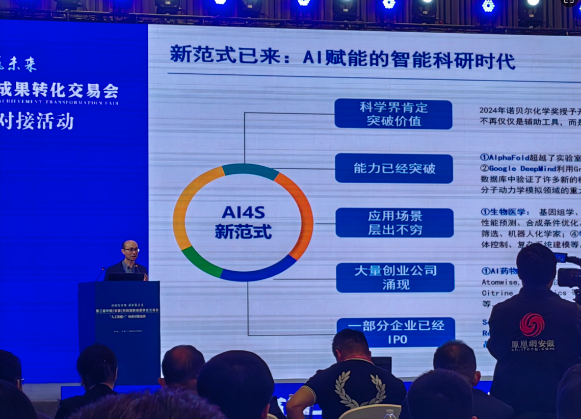 在主題演講環(huán)節(jié),北京市長(zhǎng)城企業(yè)戰(zhàn)略研究所副總經(jīng)理黃波以《AI for Science——科研的新范式、新賽道和大變革》為題,探討人工智能如何重構(gòu)科學(xué)研究方法論。